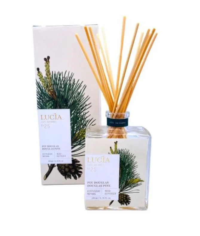 200ml de parfum envoutant qui embaume la maison. Fait d’aiguilles de pin Douglas et de bois fraîchement coupé. Cet ensemble contient 1 flacon de parfum aromatique et 14 tiges de rotang. Produit de Lucia les saisons, huiles essentielles, fabriqué au Canada.