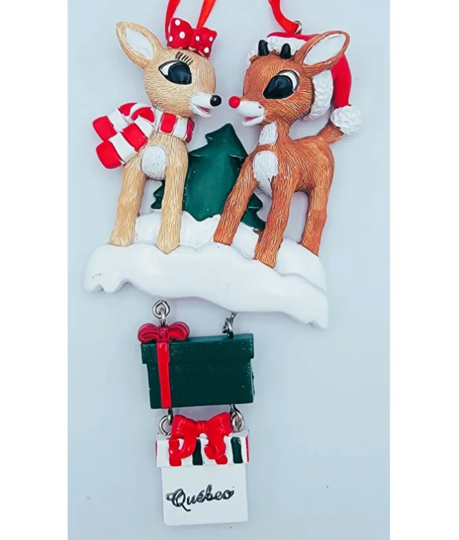 Ornement, Rudolph, Clarice avec 2 cadeaux de Noel, peut etre personalisé